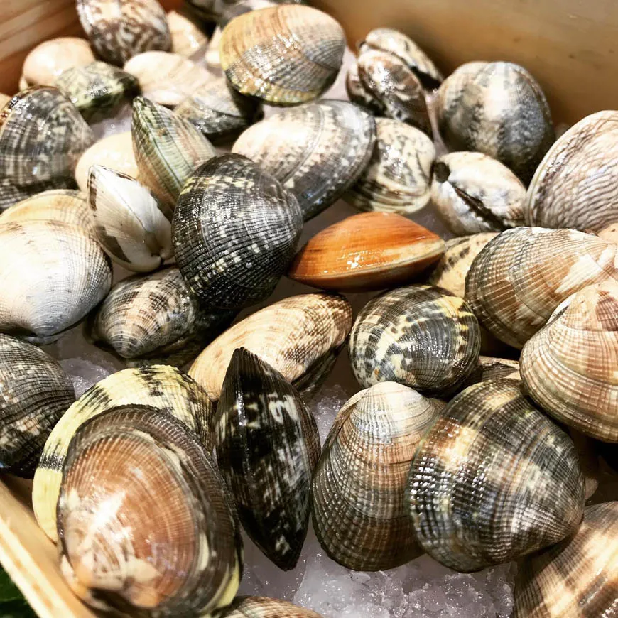 Almeja fresca de Cambados (Pontevedra). Sin hidratos y rica en potasio, es ideal para dietas saludables y guisos marineros.