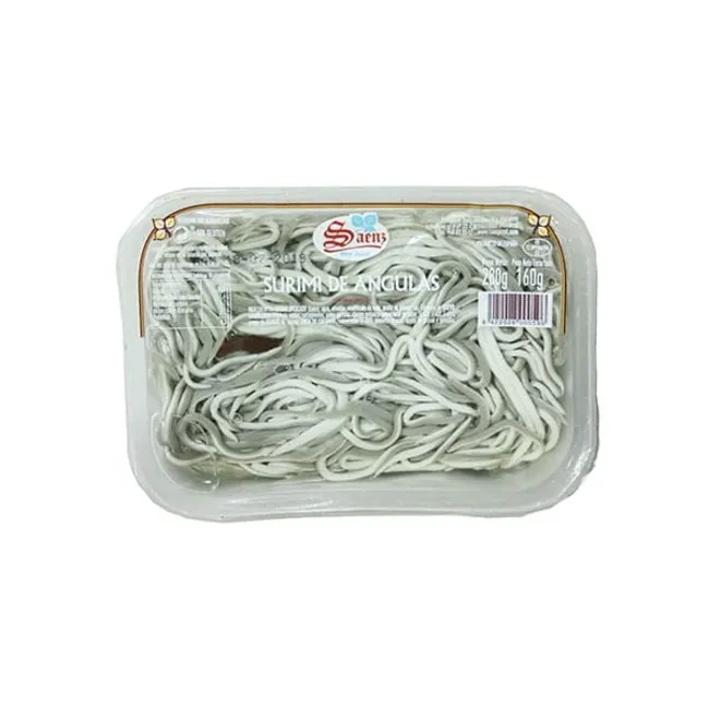 Sucedáneo de angulas en aceite ideal para tapas, ensaladas o pastas. Producto práctico sin necesidad de refrigeración. Envase de 280 g con 160 g escurridos. Perfecto para preparaciones rápidas.
