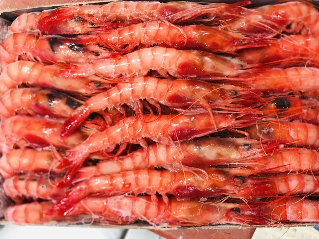 Gamba roja de tamaño mediano (Tres Carabelas). Producto crudo de sabor intenso, ideal para preparaciones rápidas a la plancha.