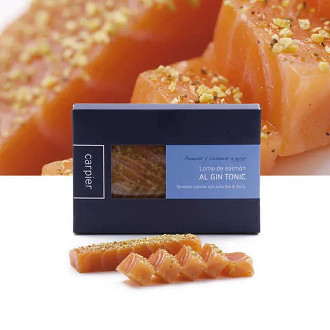 Lomo de salmón noruego de más de 12kg, elaborado artesanalmente con los botánicos y el frescor del Gin Tonic.