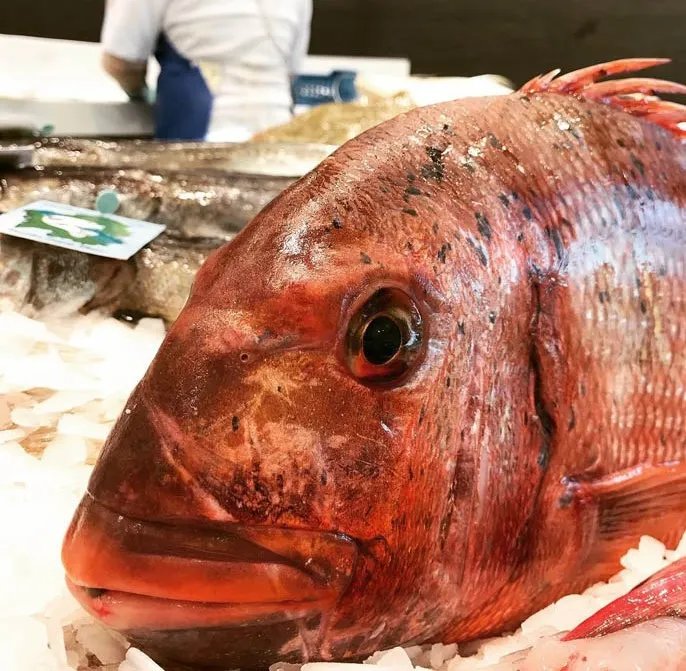Pargo salvaje (Pagrus pagrus) de Palamós, capturado con palangre o arpón en el Mediterráneo. Pescado fresco y sabroso, ideal para preparar al horno, a la sal o guisado.